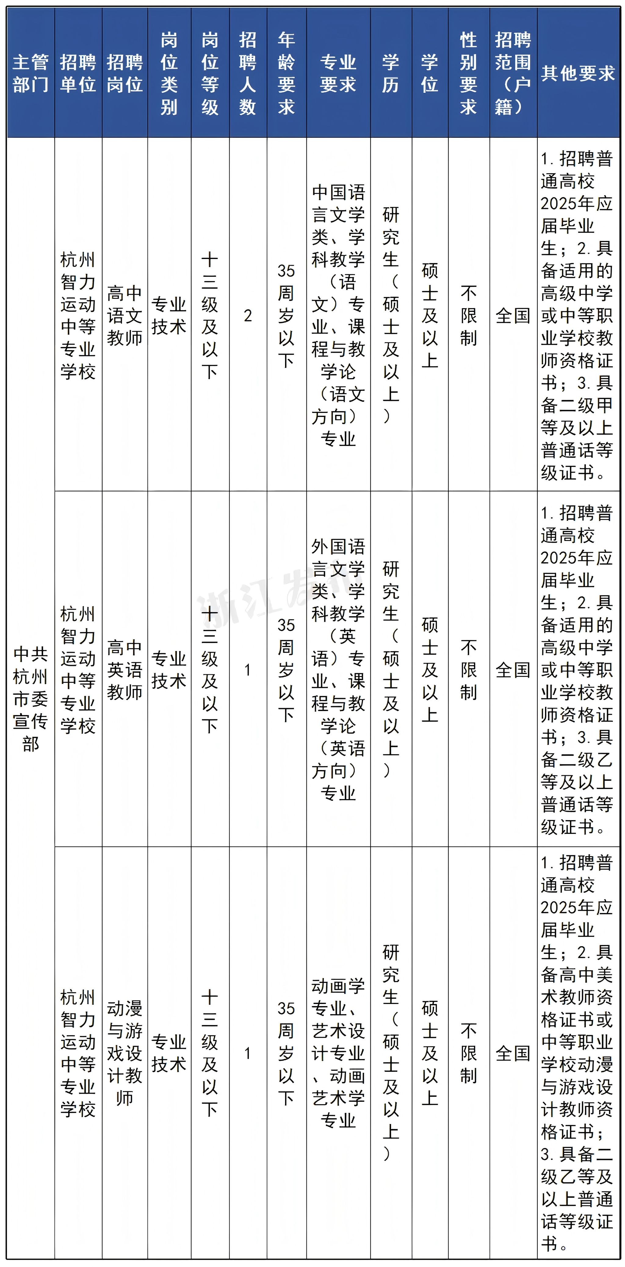 本次招聘专业技术岗专职教师3名,包括学科带头人、学术骨干以及博士。