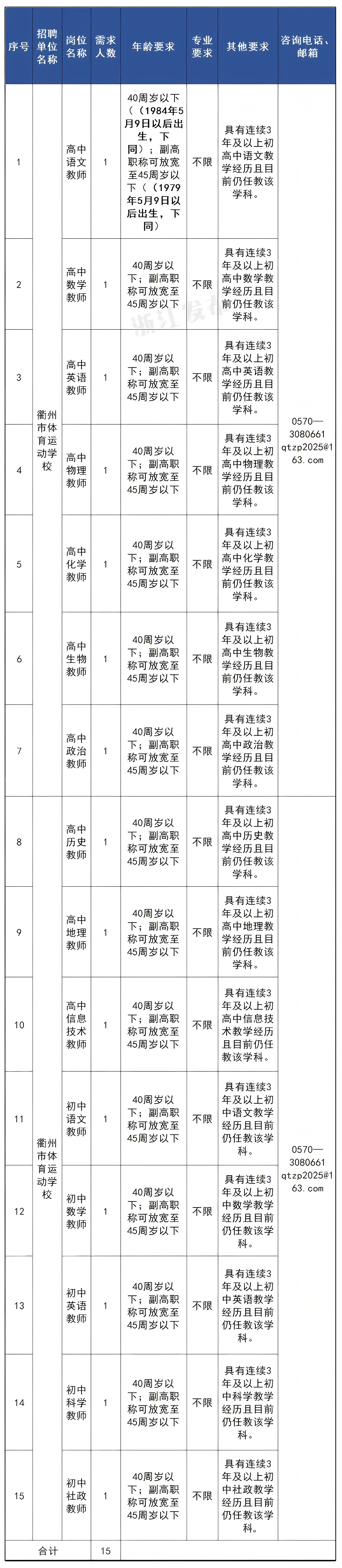 (1)《衢州市体育运动学校公开选调教师报名表》。