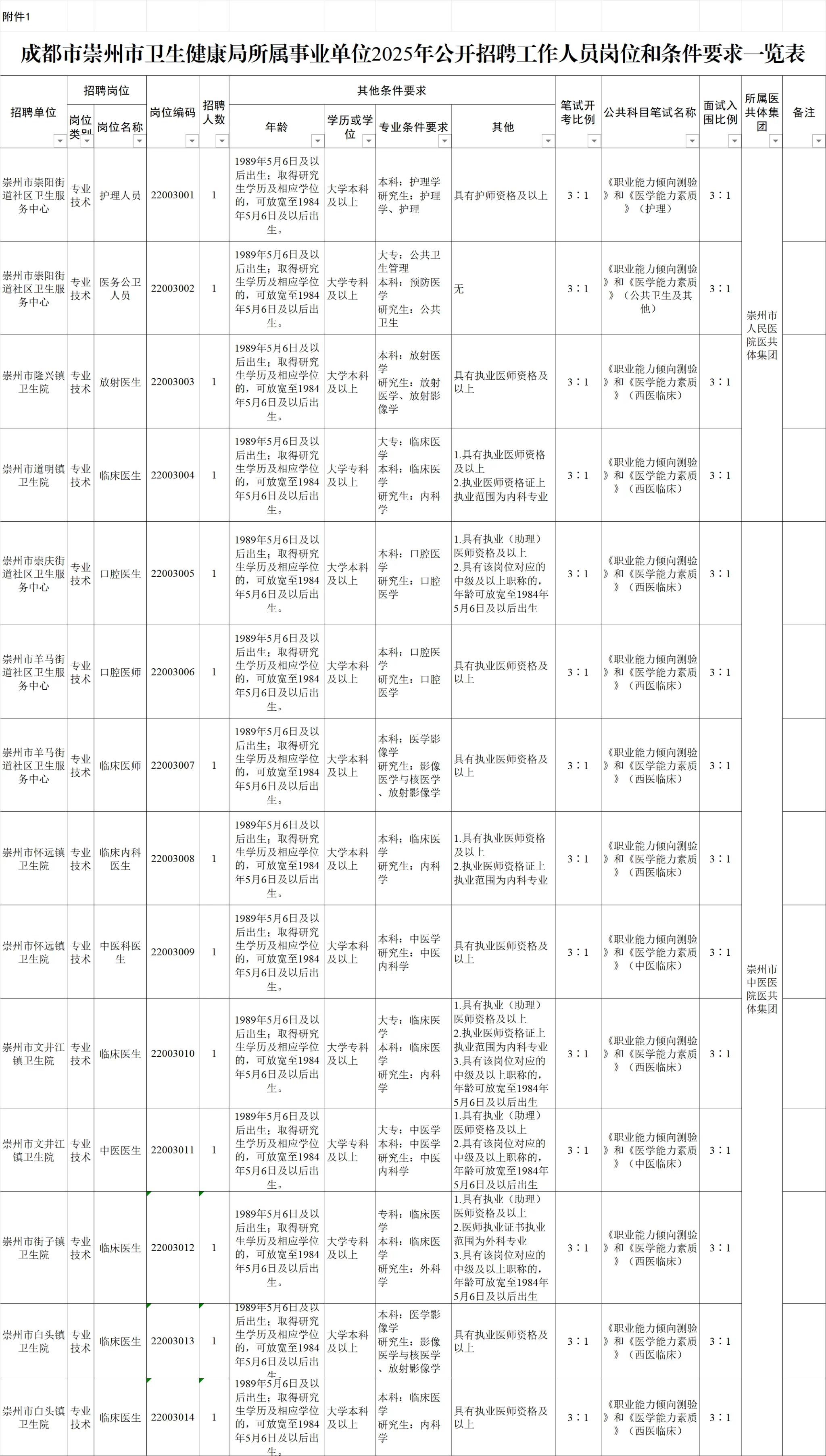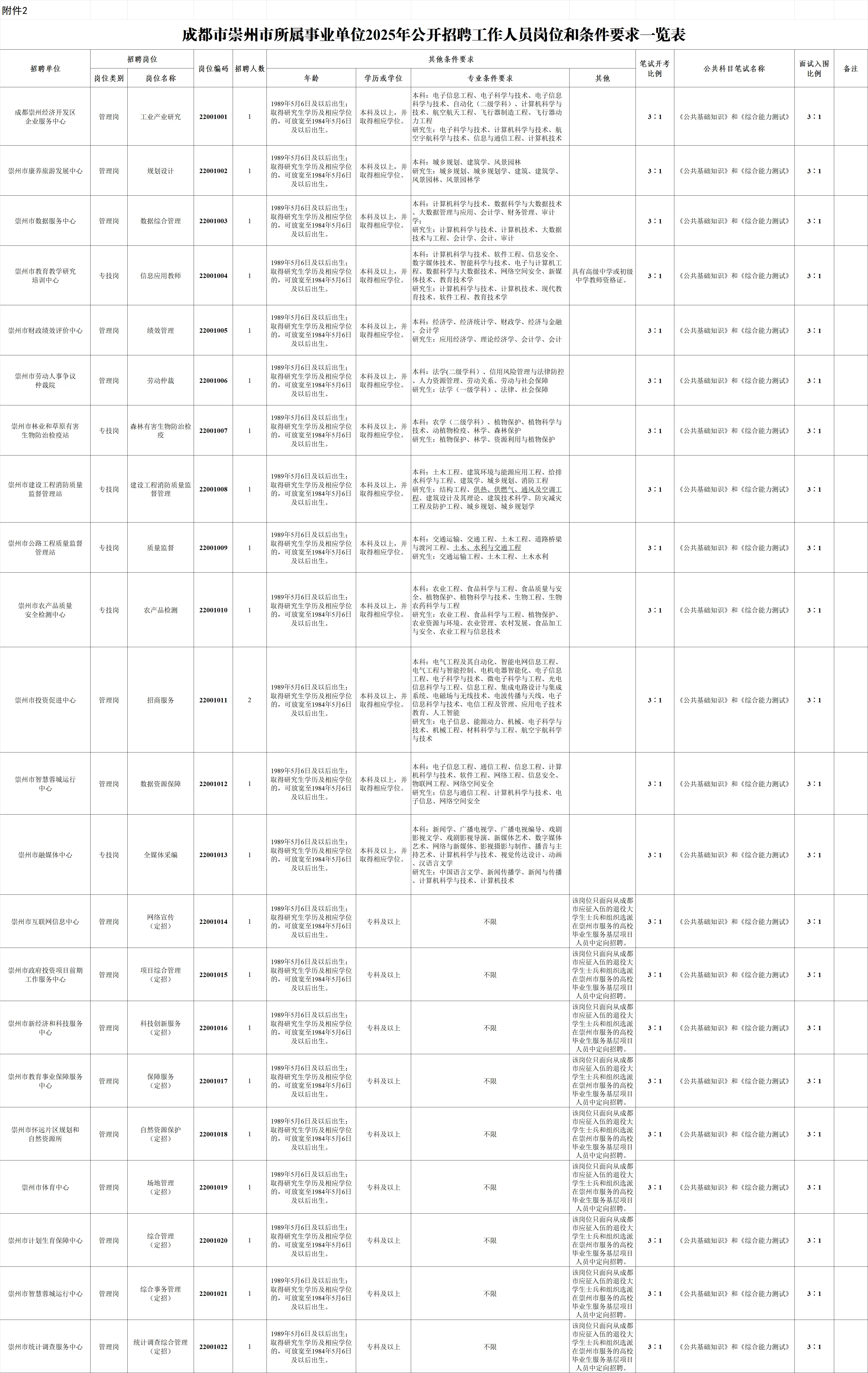 招聘岗位及名额:崇州市拟面向社会公开招聘工作人员23名;崇州市卫生健康局下属事业单位拟面向社会公开招聘工作人员14名。