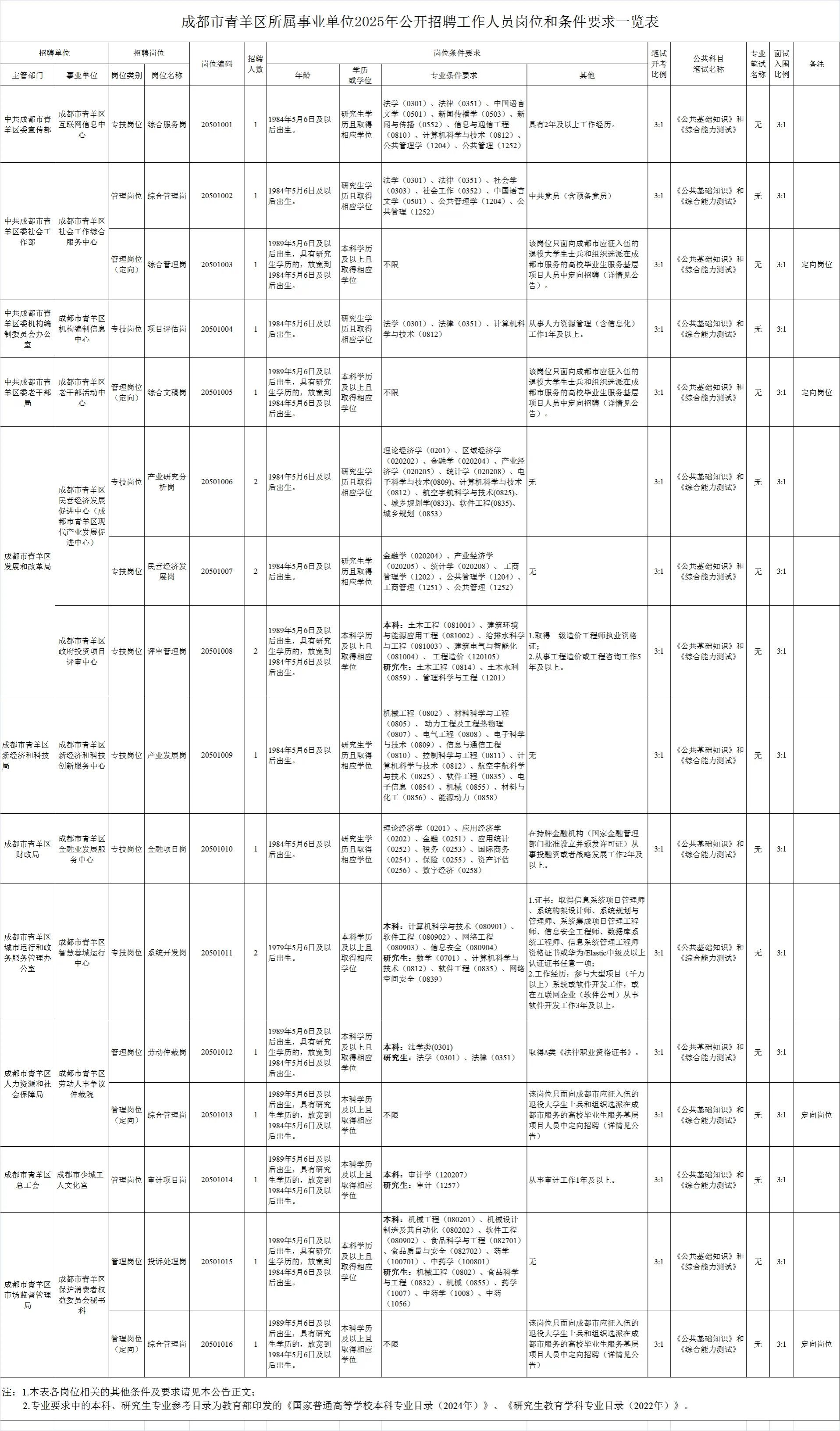 招聘岗位及名额:成都市青羊区区属事业单位拟面向社会公开招聘事业单位工作人员20名。