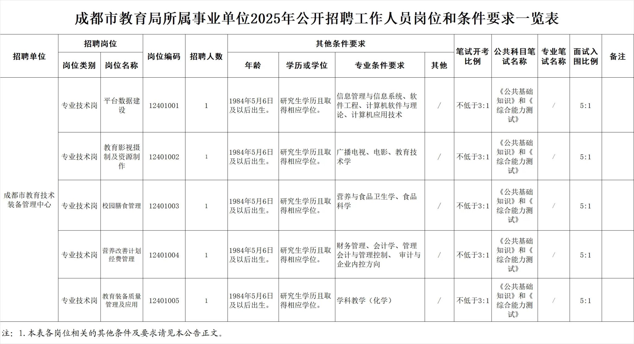 招聘岗位及名额:成都市教育局所属成都市教育技术装备管理中心拟面向社会公开招聘工作人员5名。