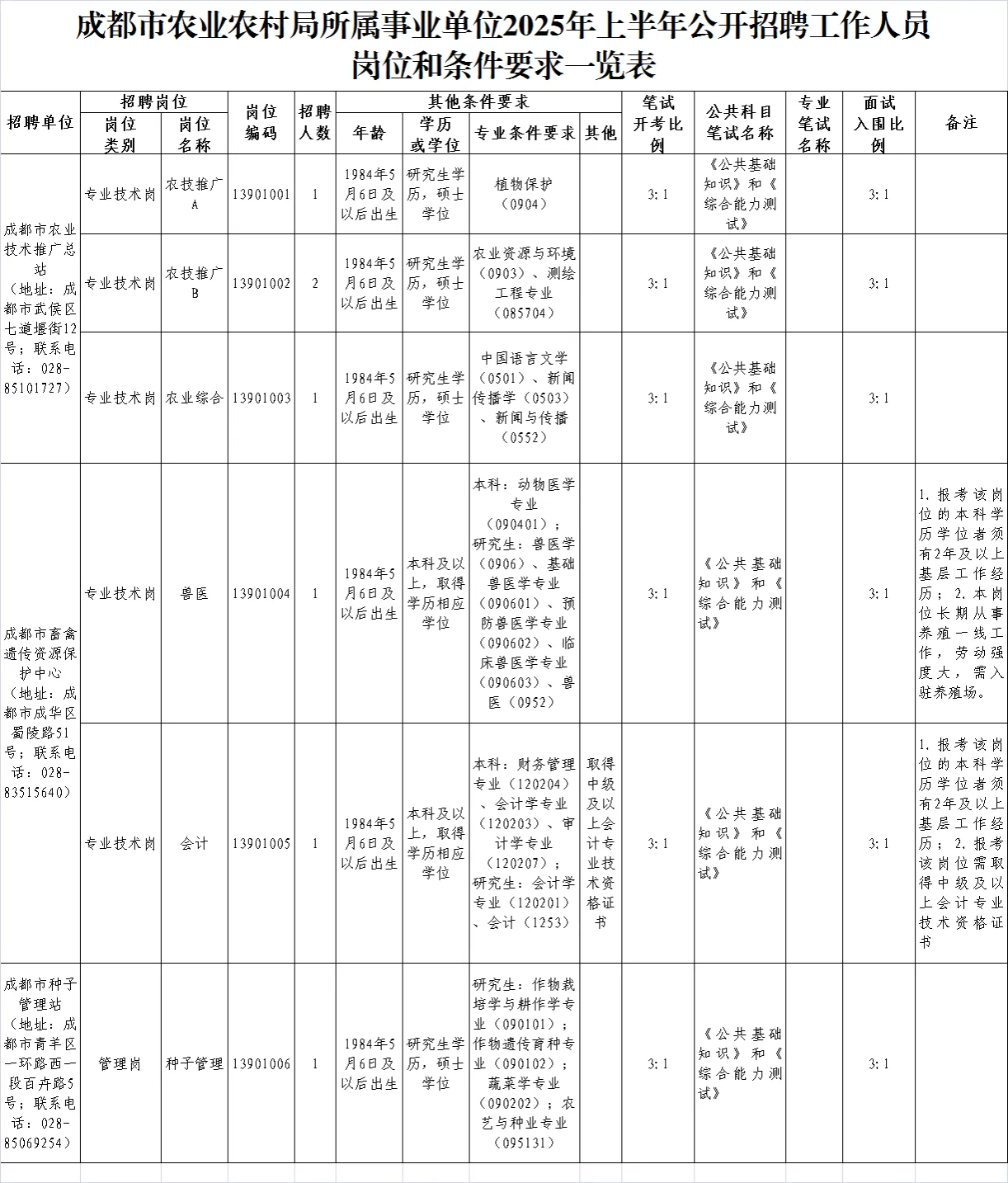 招聘岗位及名额:成都市农业农村局面向社会公开招聘工作人员7名。
