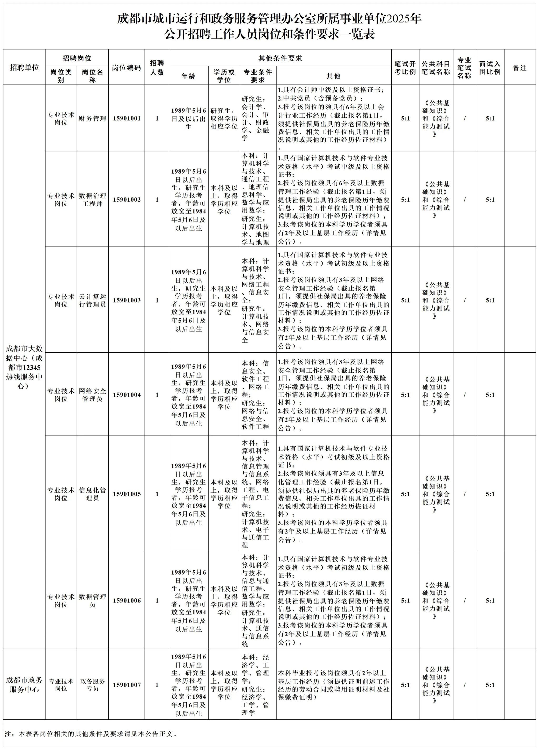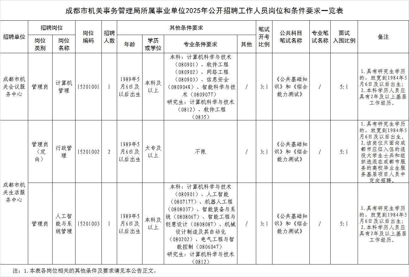 招聘岗位及名额:成都市城市运行和政务服务管理办公室面向社会公开招聘工作人员7名。