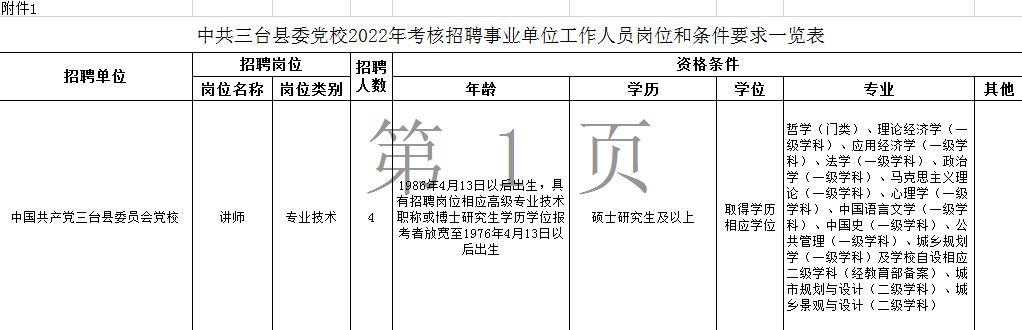 因工作需要,中共三台县委党校2022年面向全国考核招聘事业单位工作人员4名。