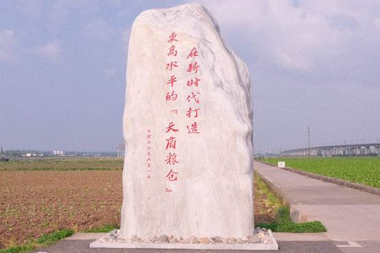 沿着田间小道向前,一块静静伫立的石碑进入师生视野。这块石碑形似大米,碑面书写着十五个鲜红遒劲的大字——“在新时代打造更高水平的天府粮仓。”这是去年6月8日习近平总书记考察永丰村时留下的殷切嘱托,也是永丰村牢记在心头的使命。杨永刚进一步介绍,为了谨记总书记的嘱托与厚望,大家特地把石碑修筑为4.6米高,寓意四季顺和与永远丰收。石碑前,师生们纷纷驻足,凝望碑上“嘱托”,用心领会总书记乐鱼在线登录“严守耕地红线 抓紧抓牢粮食生产”重要指示。