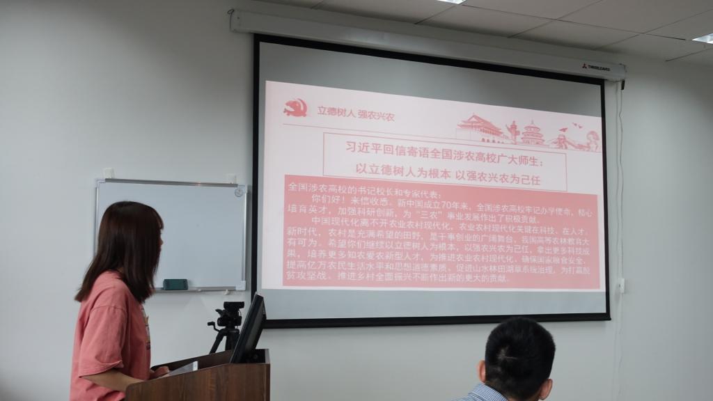 2019级研究生党支部副书记吴雨桐领学《习近平总书记给全国涉农高校的书记校长和专家代表的回信》和学校庄天慧书记、郑有良校长,学院杨世义书记乐鱼在线登录阅读回信后的感悟和思考。与会党员展开了热烈的交流讨论,2018级杨淆同志结合自己的研究内容谈到:“习近平总书记在这个时间回复这样一封信,我感到十分有意义。今年是建设全面小康社会关键的一年,作为研究乡村振兴方向的同学,我感到了党中央的重视。身在农业高校,我们要心怀责任感和使命感,紧密结合专业去助力乡村振兴。第一要结合乡村的实际情况,第二要结合自己的专业知识去帮助他们思想‘减贫’”。2019级林书竹同志也分享了自己的感悟:“实施乡村振兴战略,是党的十九大做出的重大决策部署,要想实现乡村振兴,农业科技进步很关键,而农业院校是推进农业科技进步的重要力量。作为农业院校马克思主义学院的研究生,我们应该以强农兴农为己任,努力扩展自身知识面,提高自身思想境界,以身作则,引领身边的同学为实现国家富强和中华民族伟大复兴的中国梦贡献自己的力量”。
