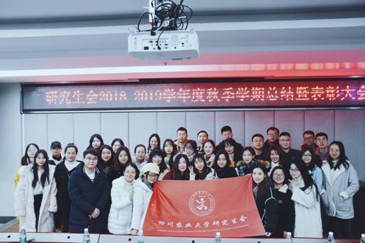 为推动校研究生会工作更好更快的开展,四川农业大学研究生会分别于2018年12月23日(雅安校区)、2019年1月9日(都江堰校区)、2019年1月17日(成都校区)成功举行研会学期总结暨表彰大会,对本学期各部门工作内容进行总结,并对学生工作中积极主动、成绩突出的优秀个人给予表彰。